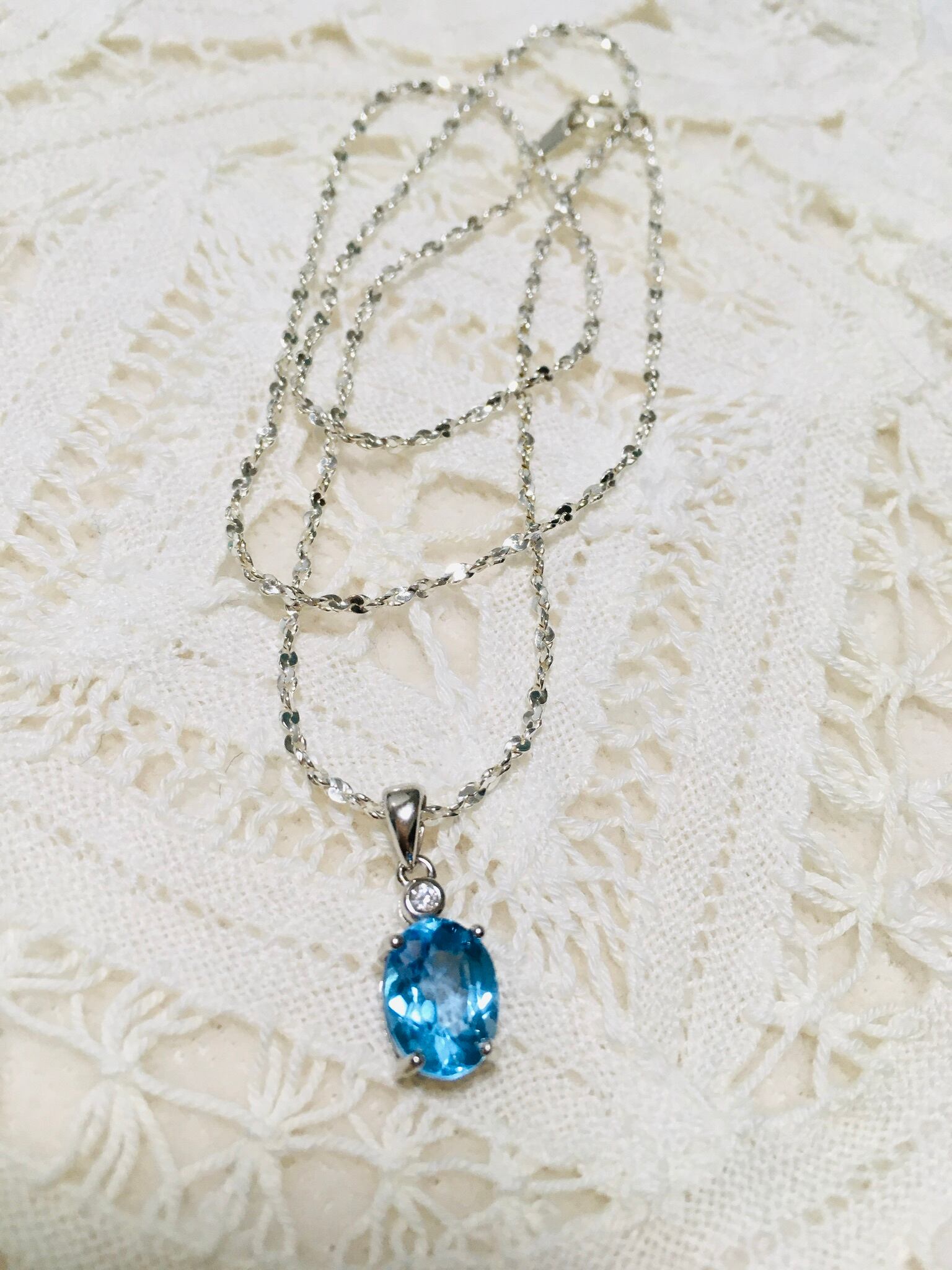 スイスブルートパーズのペンダントとネックレスチェーンです。