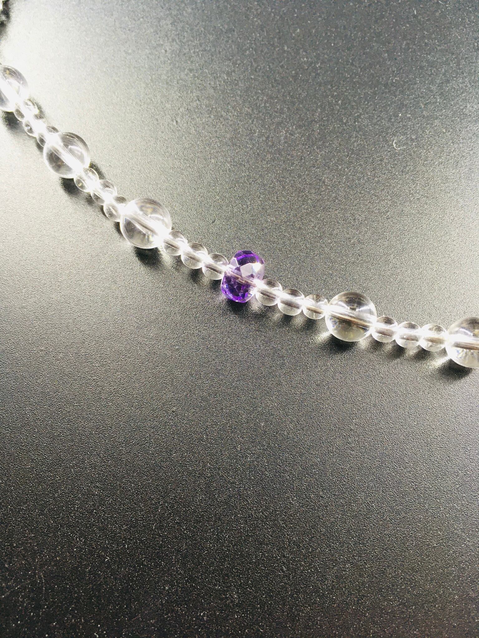 透明感と輝きが素晴らしい宝石質(5A)のアメジストとクリアな水晶(5A)の上品で、美しいネックレスです。